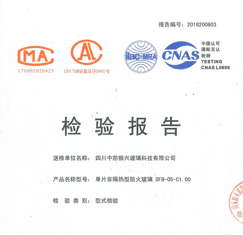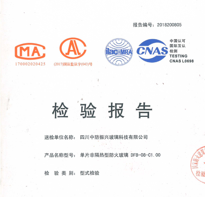 1小时8mm厚单片非隔热型防火玻璃,型式检验报告。防火玻璃是一种高端的建筑玻璃,除了具有普通玻璃的性能外,还具有控制火气蔓延、隔烟和隔热等性能,可防止火灾透过隔断和外幕墙波及到建筑物的其...