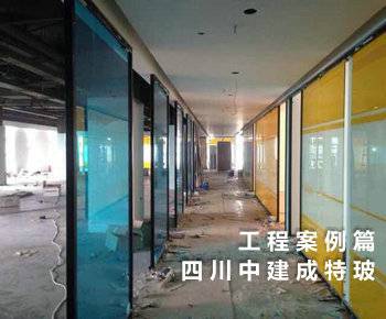 玻璃配置:12mm磨砂隔条带LOGO工艺钢化玻璃、12mm钢化玻璃背漆玻璃、8mm钢化背漆玻璃、12mm防火玻璃、6+1.14PVB+6双钢化彩色夹胶玻璃(天蓝色、金黄色彩夹)...