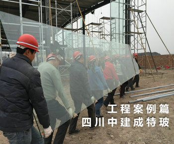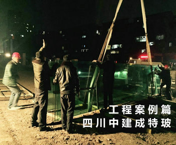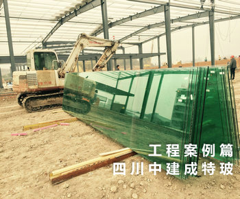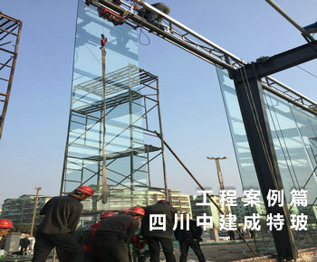 工地现场15mm超大板钢化玻璃安装过程中..