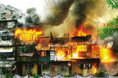 2009年11月15时30分许,福州台江新港社区银河弄木屋毗邻区着火,大火殃及了5幢民房,着火时,20多位居民闯进火场抢搬物品,被消防人员一一“抓”出。