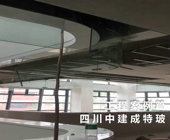 材料配置:挡烟垂壁用6+0.76PVB+6双防火夹胶玻璃。挡烟垂壁分别用于该项目的图书馆及艺术楼。